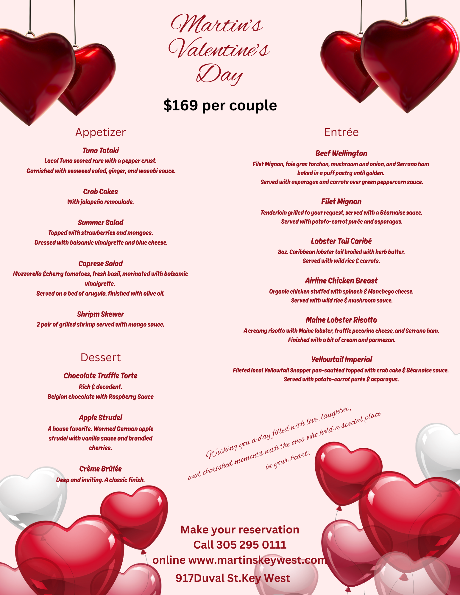 THREE COURSES / $169.00 PER COUPLE (shared appetizer and dessert)